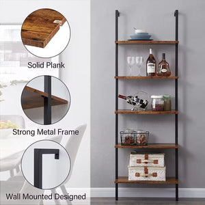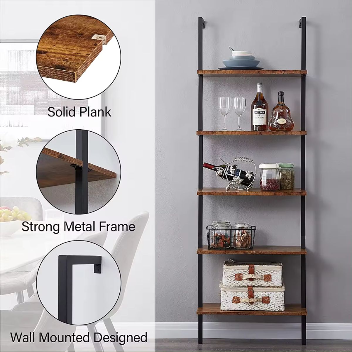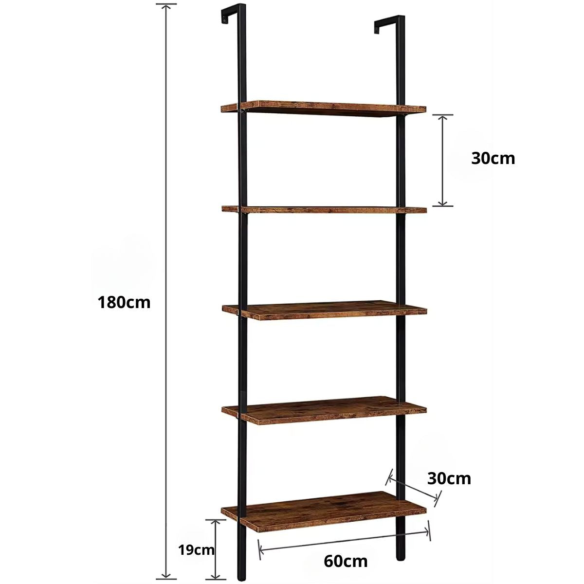 Estantería Industrial De 5 Niveles, Librero De Pared Nogal Pakan