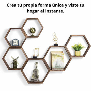 Estantes Hexagonales De Madera Para Pared 6 Piezas