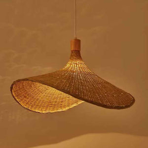 Apuesta por una iluminación única, ecológica y con un toque artístico que solo una lámpara de mimbre tejida a mano en forma de sombrero de paja creativo puede ofrecer. Dale vida a tus espacios con una pieza que une tradición, creatividad y modernidad.