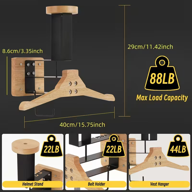 - [ Resistente y Duradero ] La motocicleta estante del casco está hecho de alacero de alta calidad, que es resistente y duradero, y no es fácil de deformar. , El colgador de metal para casco es del base engrosada capacidad de carga más fuerte. Percheros y otras tablas son seguros de usar, de buena calidad y durabilidad han sido fuertes capacidad de carga. El soporte de pared puede soportar hasta 35kg, por lo que es una solución de almacenamiento confiable para su motocicleta y equipo táctico.