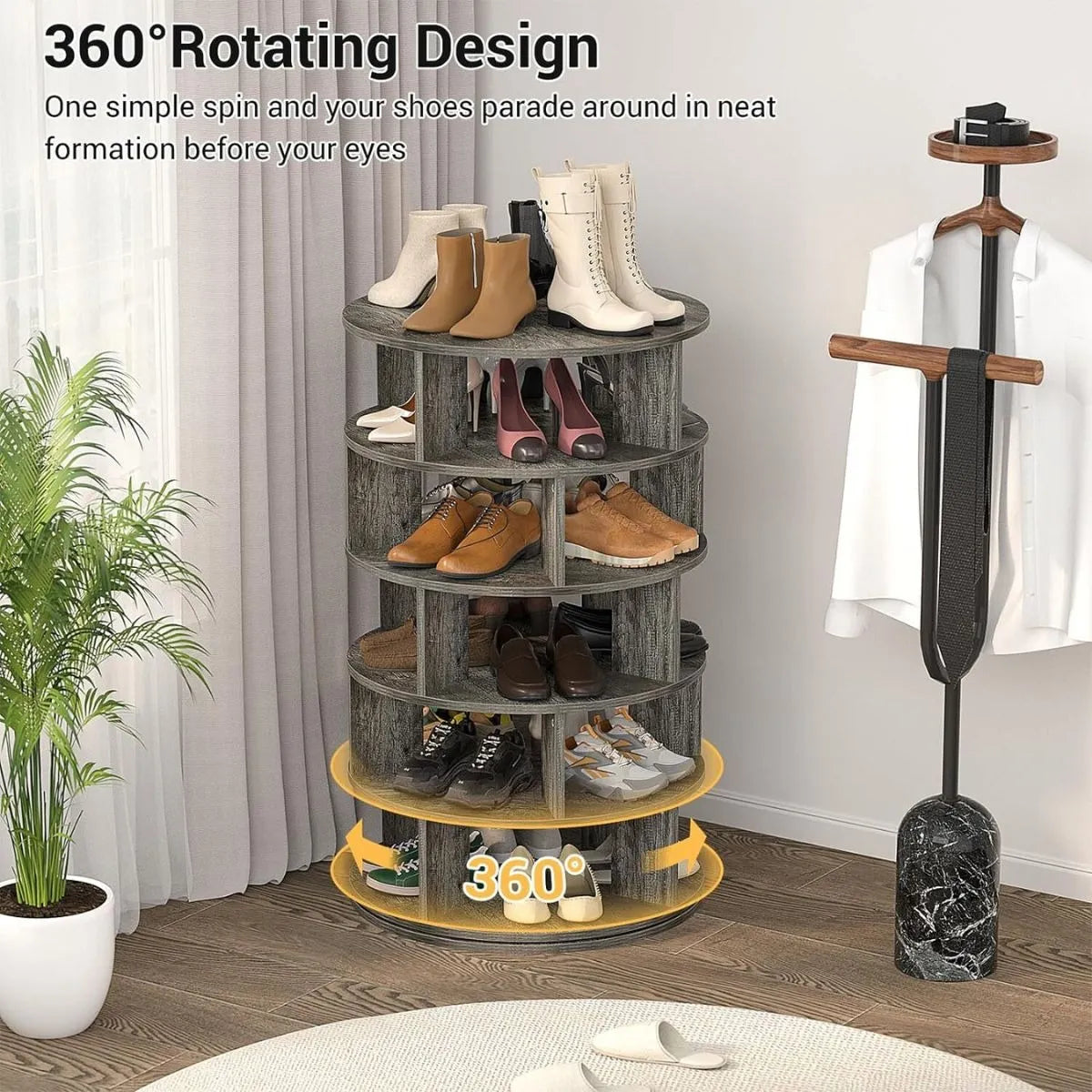 Soporte para exhibición de zapatos de 5 niveles: mantén tu hogar limpio y mantén un seguimiento de tus zapatos mejor con esta torre giratoria para zapatos; hace que cada zapato sea visible y ahorra mucho espacio de almacenamiento de tu habitación en el clóset
